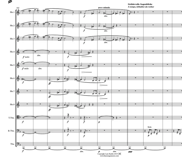 Commissioned by Hitzacker Musiktage for Professor Markus Maskuniitty and the Hannover Horn class in 2009