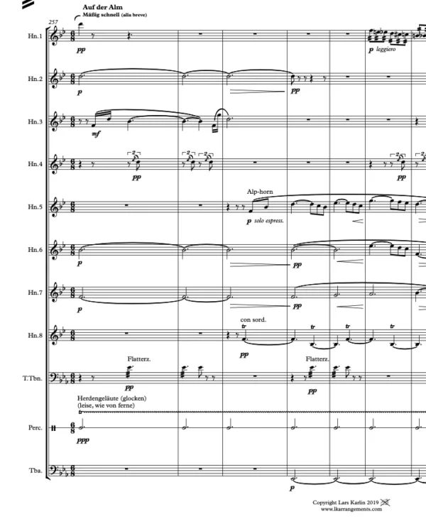 8 Horns F (1st-4th Horn are high Horn parts, 5th horn is a high-low Horn part, 6th-8th Horn are low Horns),