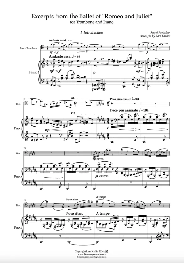 Ballet of Romeo and Juliet (Short Suite) for Tenor Trombone and Piano – Sergei Prokofiev