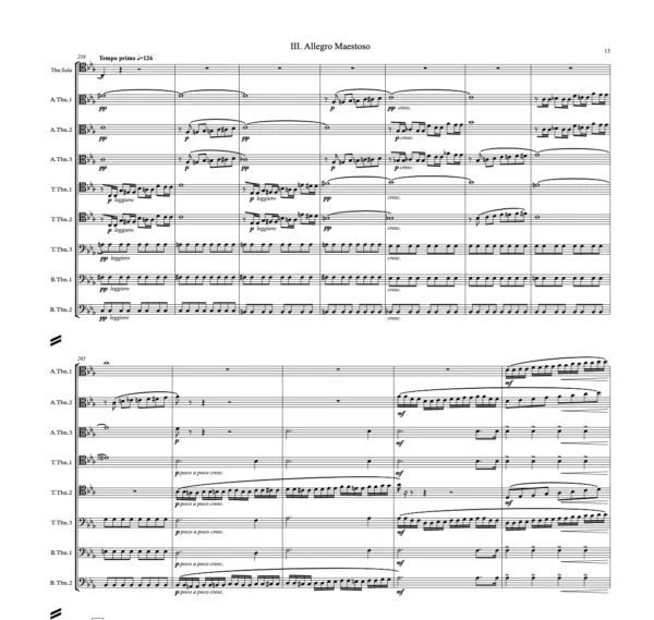 Score & Parts: 1 Solo Tenor Trombone, 3 Alto trombones, 3 tenor Trombones, 2 Bass Trombones, 1 Extra optional part
