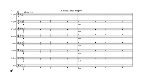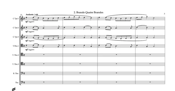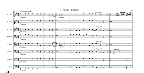 Score & Parts: 3 Trumpets C, 3 Tenor Trombones (with option of Horn in F part replacing 1st Tenor Trombone), Bass Trombone, Tuba & Score in C.