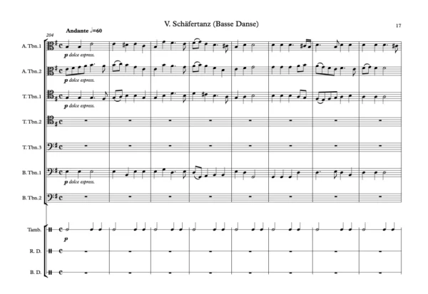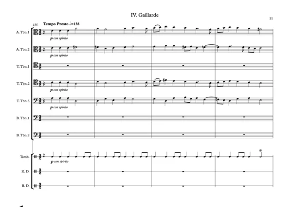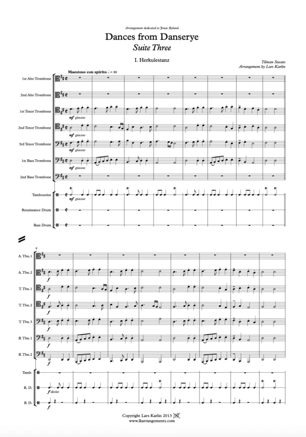 Score & Parts: 2 Alto Trombones, 3 Tenor Trombones, 2 Bass trombones, Tambourine, Renaissance Drum, Bass Drum