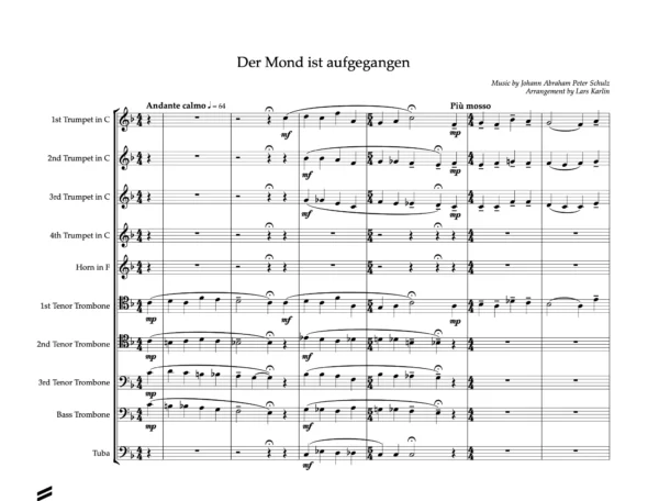 Score & Parts: 4 Trumpets in Bb or C, Horn in F, 3 Tenor Trombones, Bass Trombone, Tuba & Score in C