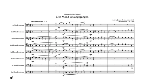 Score & Parts: 2 Alto Trombones, 4 Tenor trombones, 2 Bass trombones & Score in C