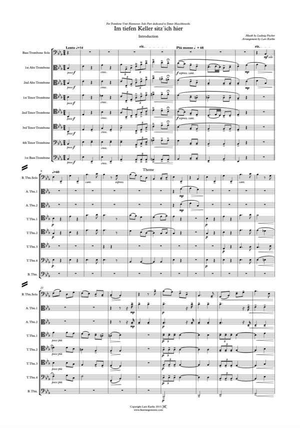 ”Im Tiefen Keller” with Variations for Bass Trombone Solo with Seven Trombones Accompaniment - German Drinking song by Ludwig Fischer”Im Tiefen Keller” with Variations for Bass Trombone Solo with Seven Trombones Accompaniment – German Drinking song by Ludwig Fischer