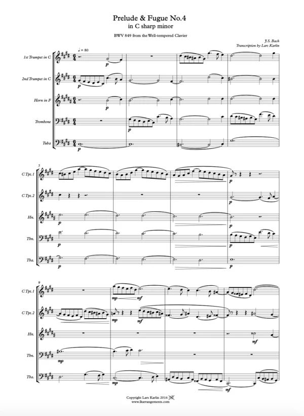 Score & Parts: 2 Trumpets in C, Horn in F, Trombone, Tuba & Transposed Score