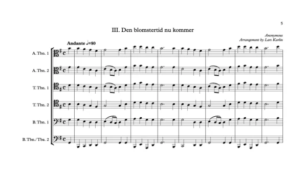 Score & Parts: 2 Alto trombones, 2 Tenor Trombones, 2 Bass trombones (or Bass Trombone and Tuba) & Score in C