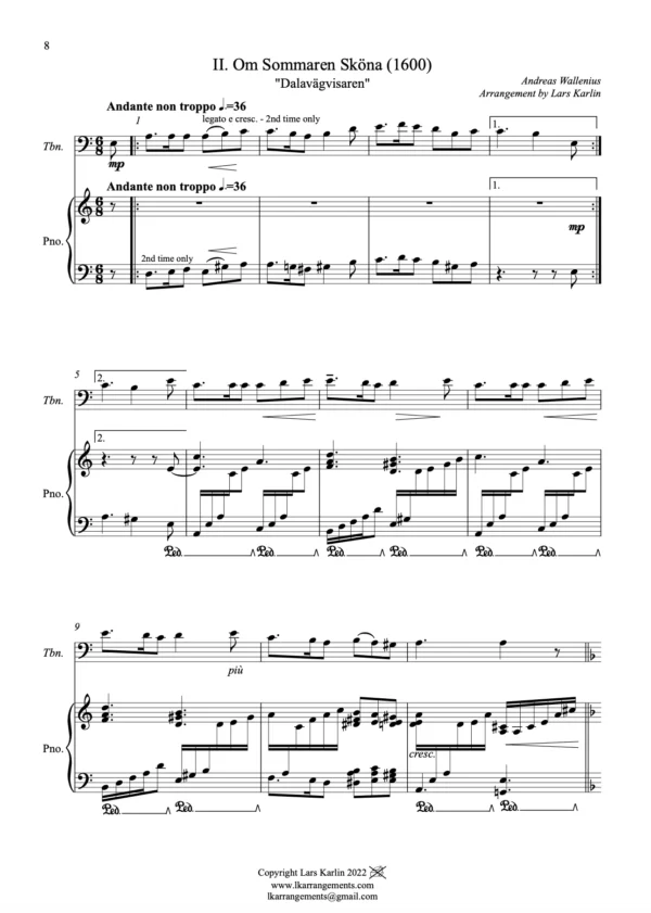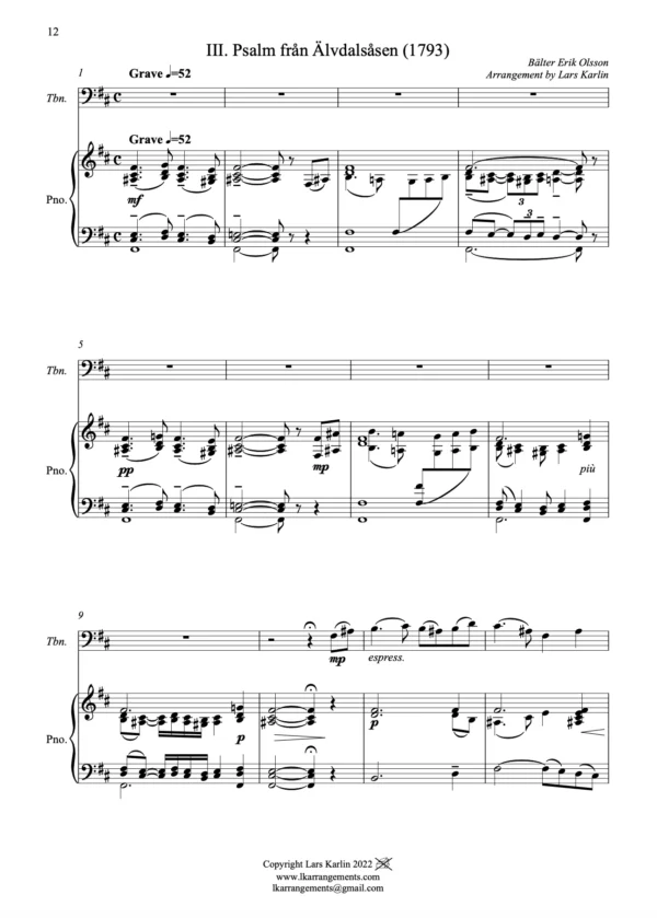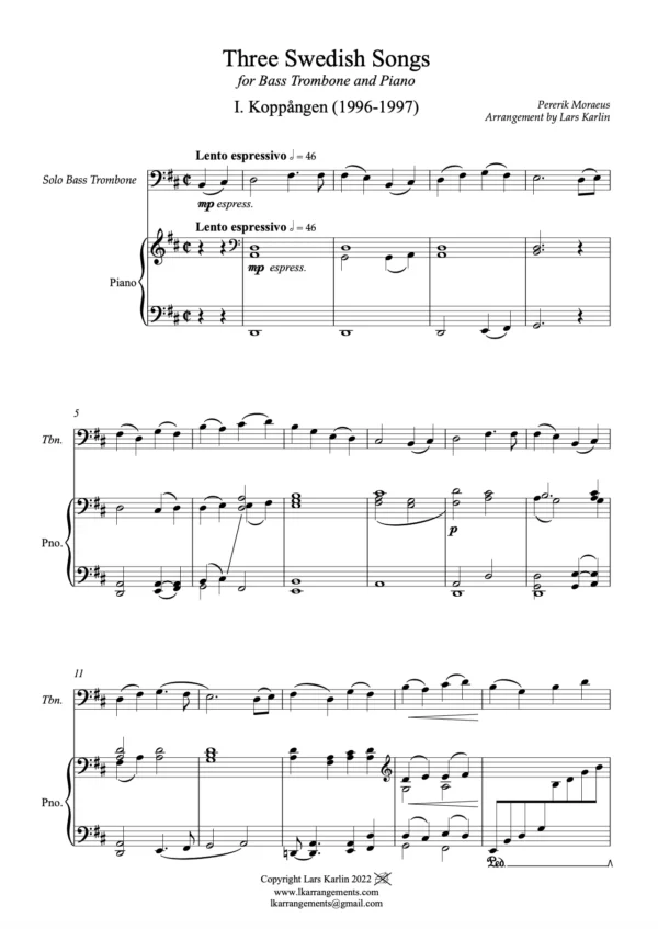 Three Swedish Songs for Bass Trombone and PianoThree Swedish Songs for Bass Trombone and Piano