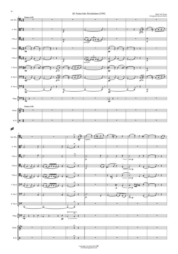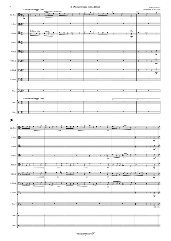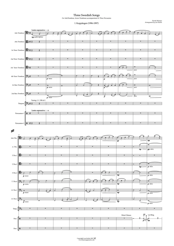 Three Swedish Songs for Tenor Trombone Solo, Seven Trombones Accompaniment, Timpani and 2 Percussion