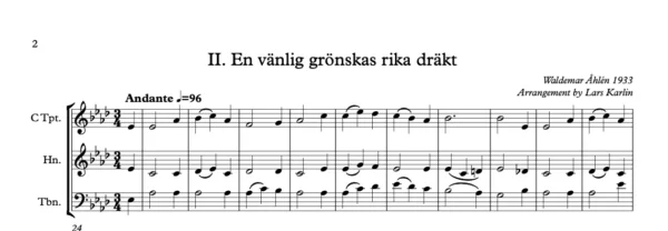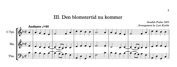 Score & Parts: Trumpet in Bb or C, Horn in F (or optional Trombone part in Tenor Clef), Trombone & Score in C